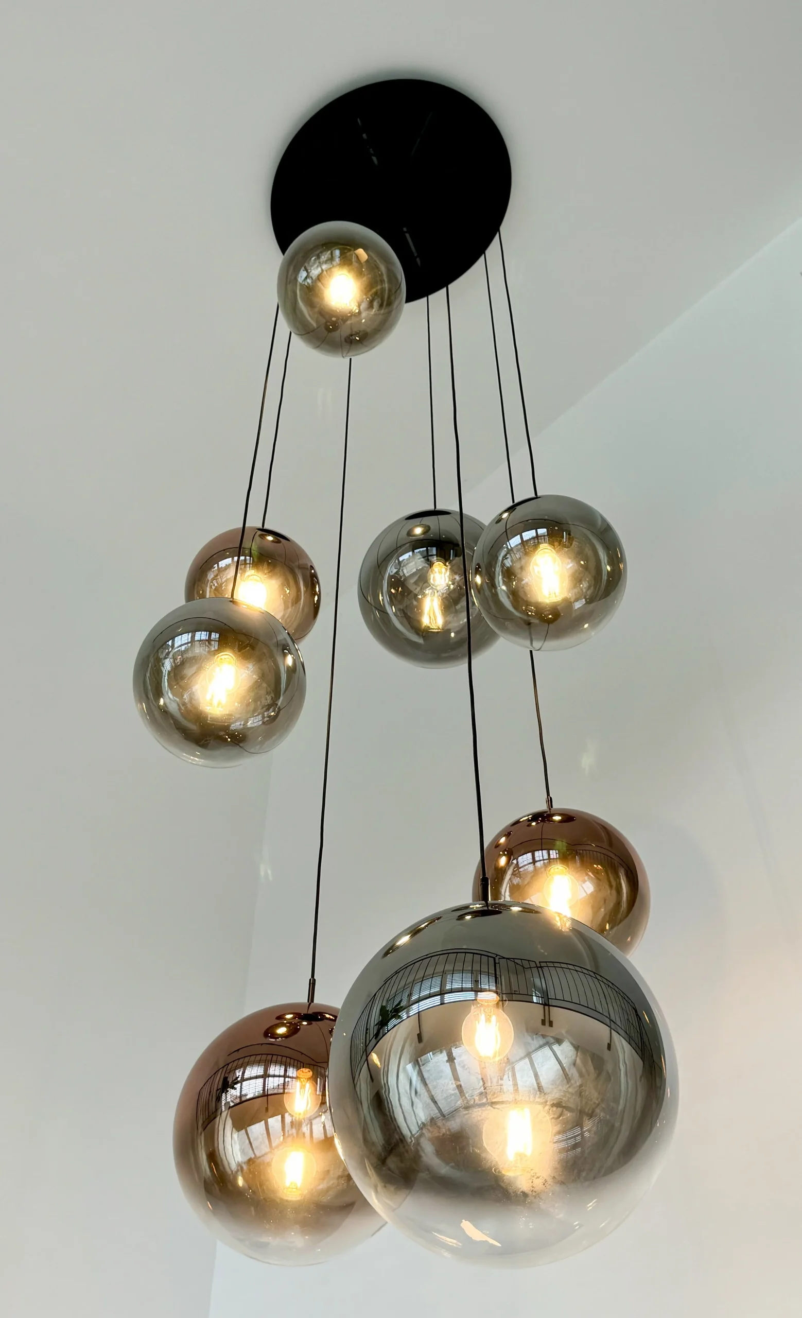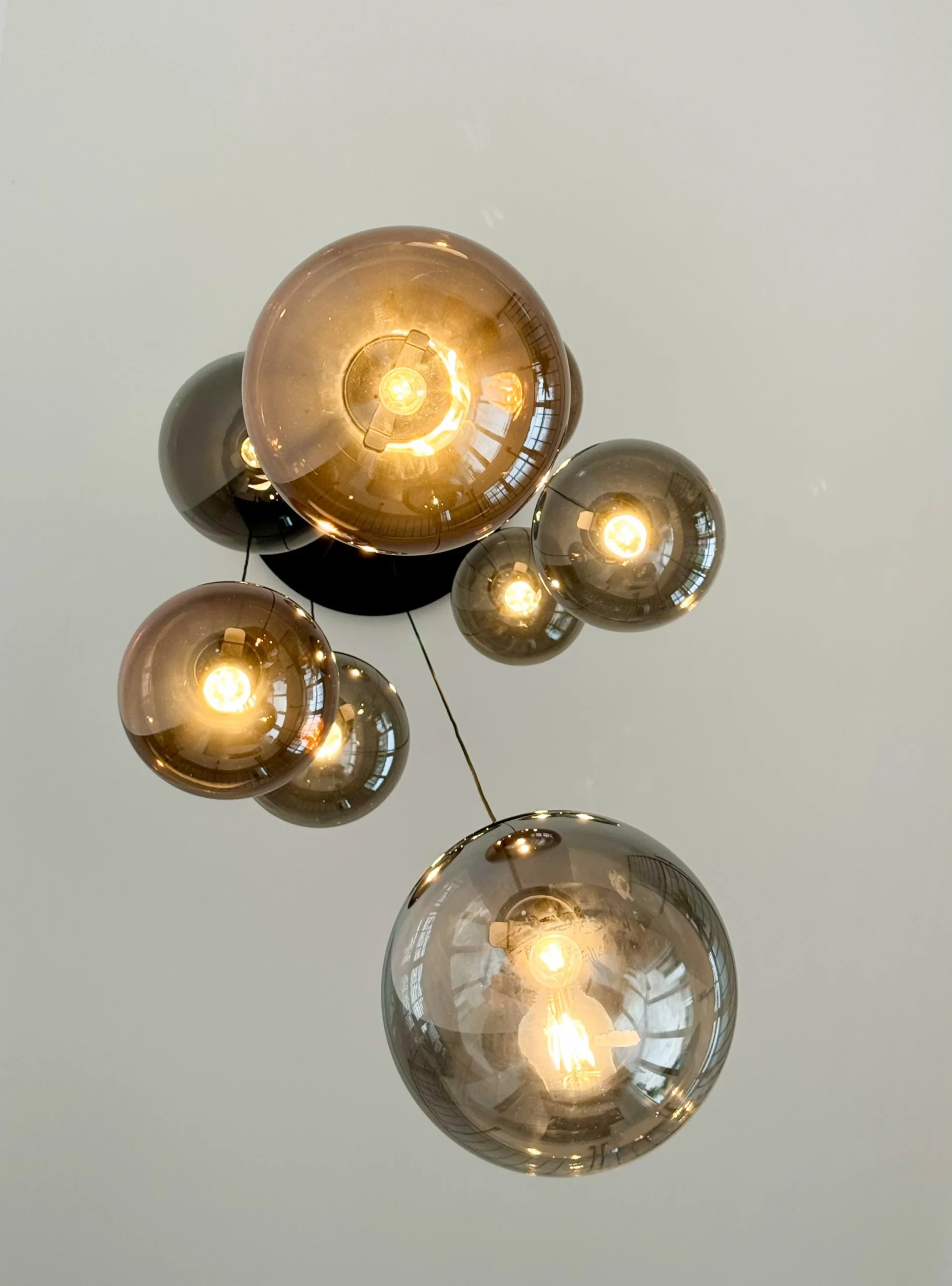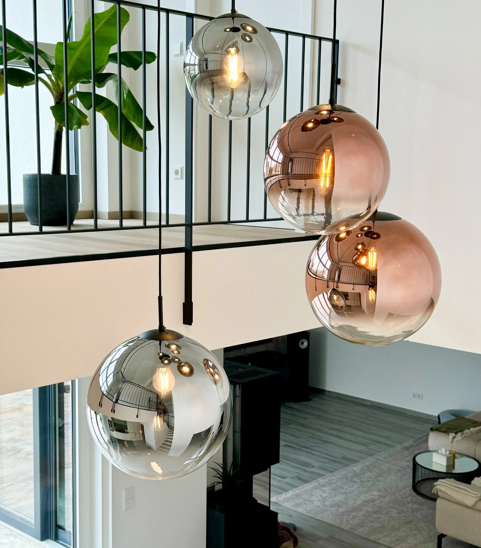 Diese Inneneinrichtung, bei einem Projekt in Niederösterreich, besticht durch die Kombination von modernem Mobiliar und durchdachtem Lichtdesign. Im offenen Galeriebereich wurden runde Pendelleuchten in Metallicfarben installiert, die nicht nur als funktionale Beleuchtung, sondern auch als stilvolles Designelement dienen. Sie verteilen das Licht gleichmäßig im offenen Wohnbereich, betonen die Raumhöhe und schaffen so eine moderne und zugleich warme Atmosphäre.
