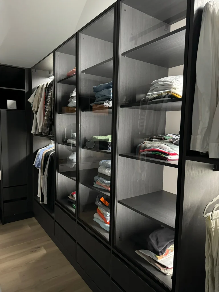 In diesem Projekt habe ich eine Garderobe entworfen, die nicht nur durch ihre modernen und klaren Linien besticht, sondern auch maximalen Komfort und Funktionalität bietet. Der Raum ist komplett maßgefertigt, so dass jeder Winkel optimal genutzt werden kann – perfekt, um alle Kleidungsstücke und Accessoires stilvoll zu verstauen.